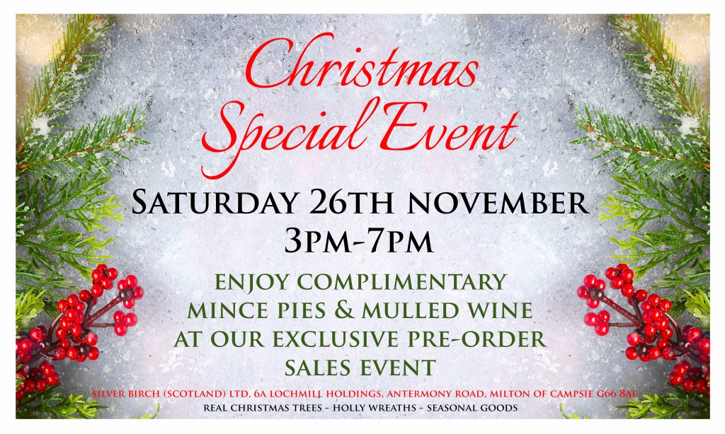 Everyone is also welcome to our Exclusive Christmas Sales Event, which will take place this year on Saturday 26th November between 3pm-7pm. Come along for a fun festive night out, enjoy some complimentary mince pies and mulled wine and listen to some live Christmas music as you pick your Christmas Tree!